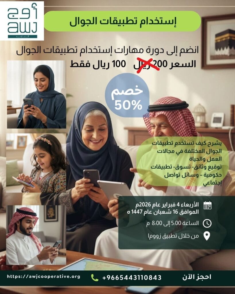 انضم إلى الرحلة الاحترافية لإتقان التعامل مع تطبيقات العصر؛ من المعاملات الحكومية الذكية إلى إدارة أعمالك وحياتك الاجتماعية بذكاء وسرعة لا تحتاج خبرات في البرمجة،